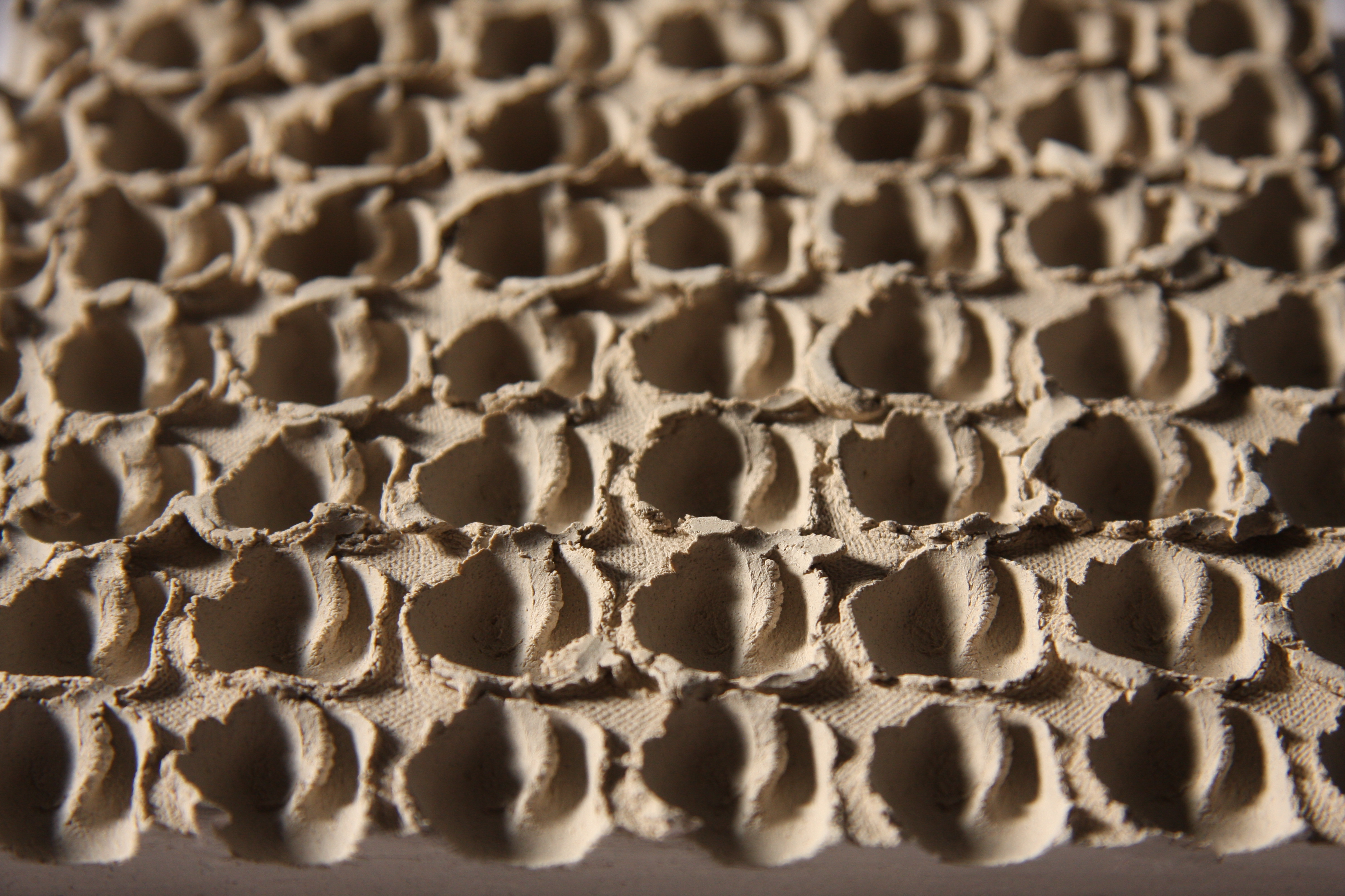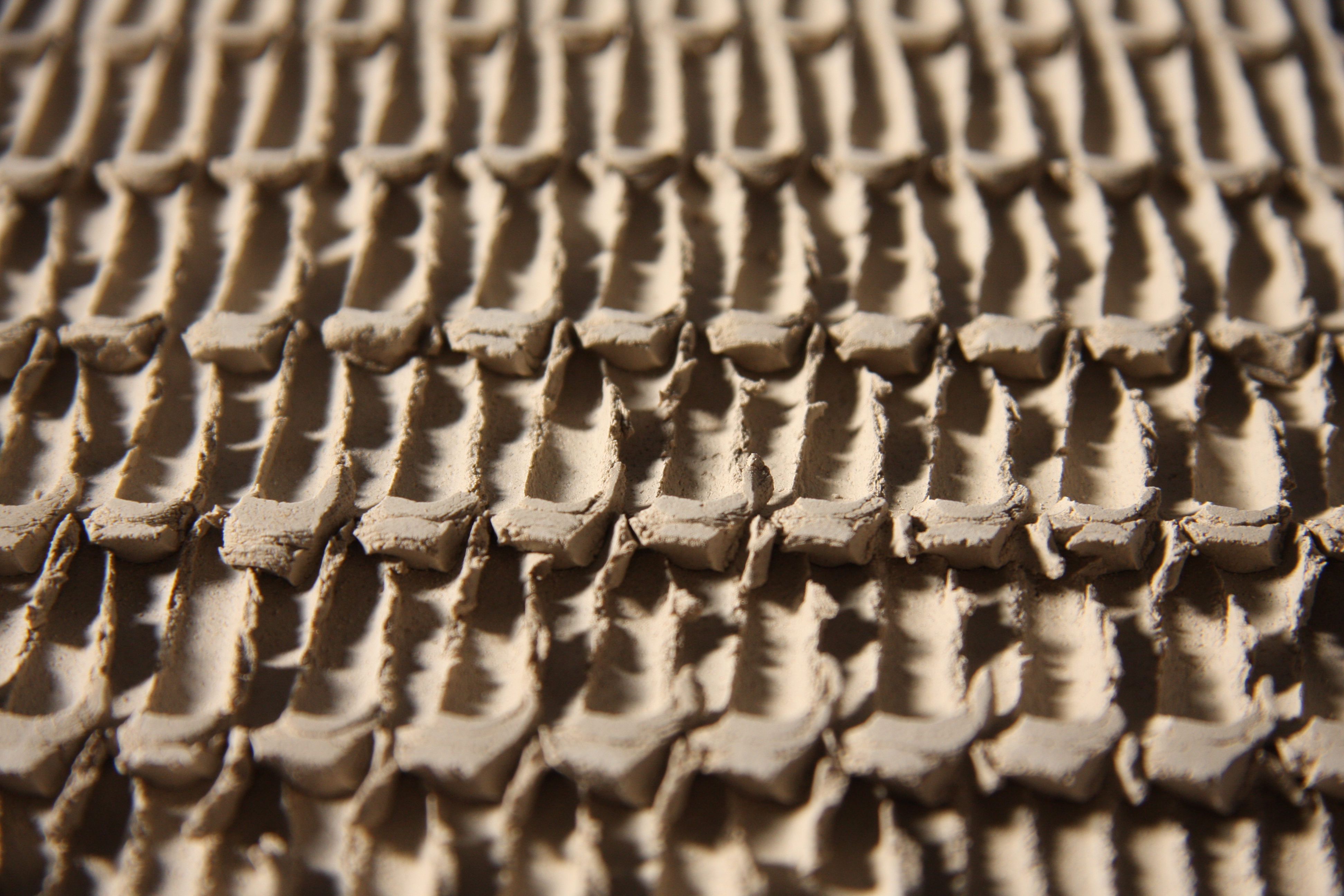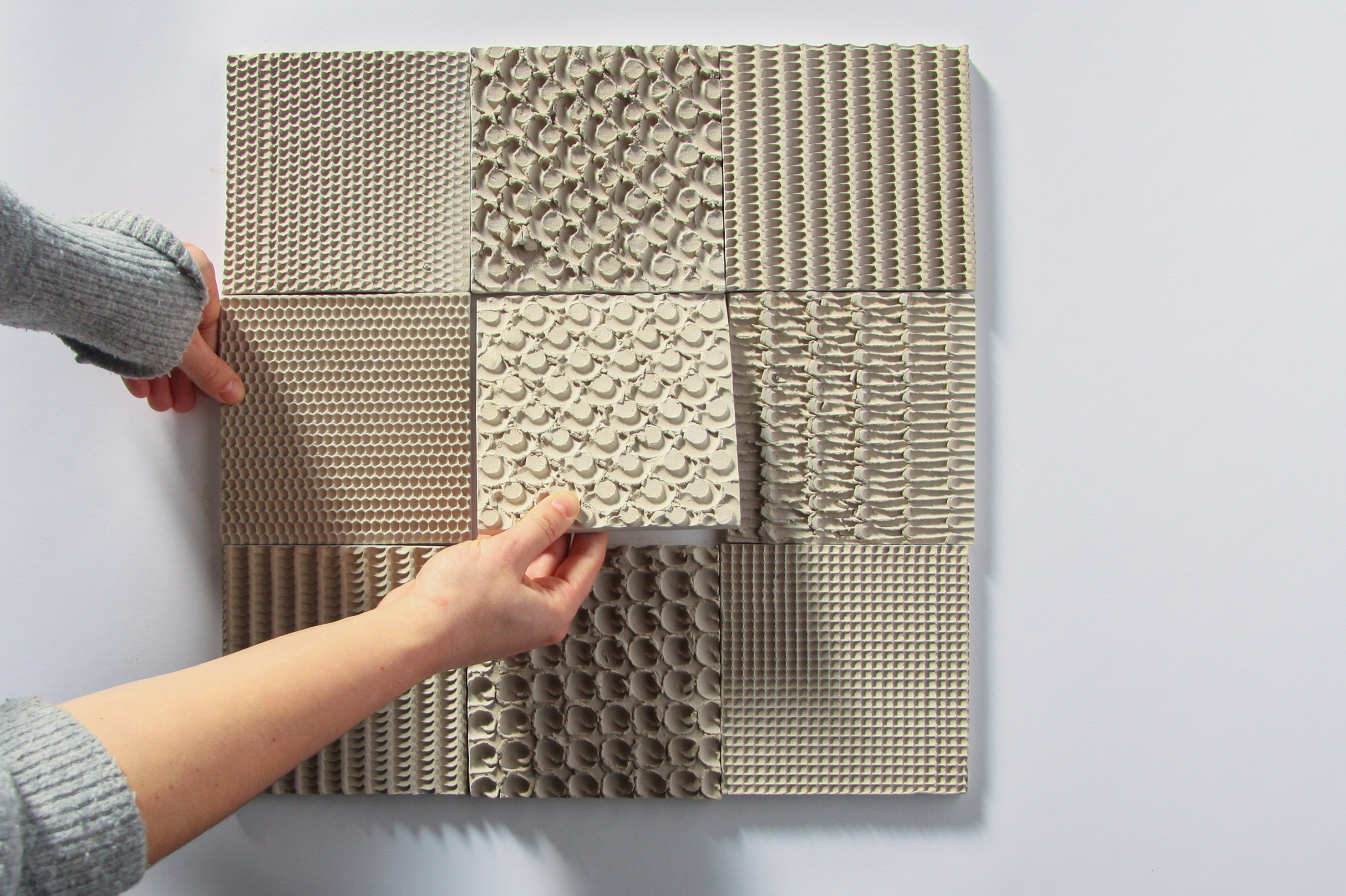 The intervention Malou is doing involves milling clay with a CNC machine. She is using ceramic tools instead of the usual tools for milling. Using the CNC machine with ceramic tools for forming clay increases the possibilities for this product. A 2D pattern is created and used as input for the CNC machine, resulting in a 3D pattern when the clay is formed. It’s all about exploring the space between her 2D pattern design and the final outcome, which will be dramatically different in terms of pattern and texture. The accuracy of the CNC milling machine is one of the reasons it is a good way to produce a large quantity of the same textures in a short period of time. With this intervention, Malou is emphasizing texture; the resulting tiles are created for both their look and feel. This makes people really want to touch these textured tiles.